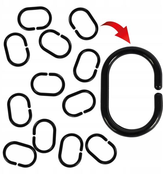 Rodeno Fekete Karikák Zuhanyfüggönyhöz 12 Db Univerzális Vízálló Akasztók (ROD2502)